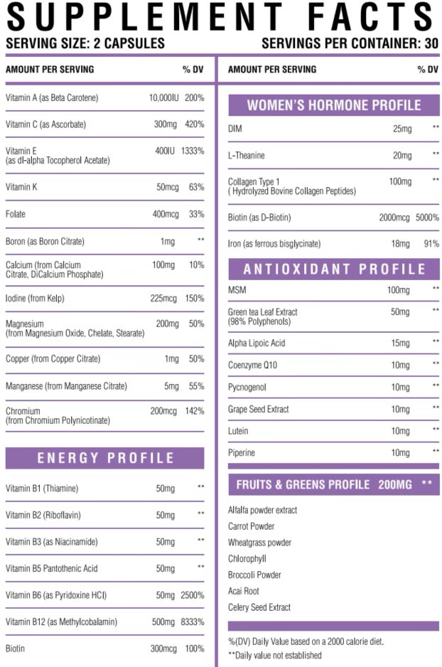 Fruits and Greens ProfileFull dose of fruits and greens per day. With this unique blend you also intake a full dose of fruits and greens for the day by a simple form of a pill. Not to say it replaces whole food fruits and greens, but it definitely will give you a more complete balance on a consistent daily basis.